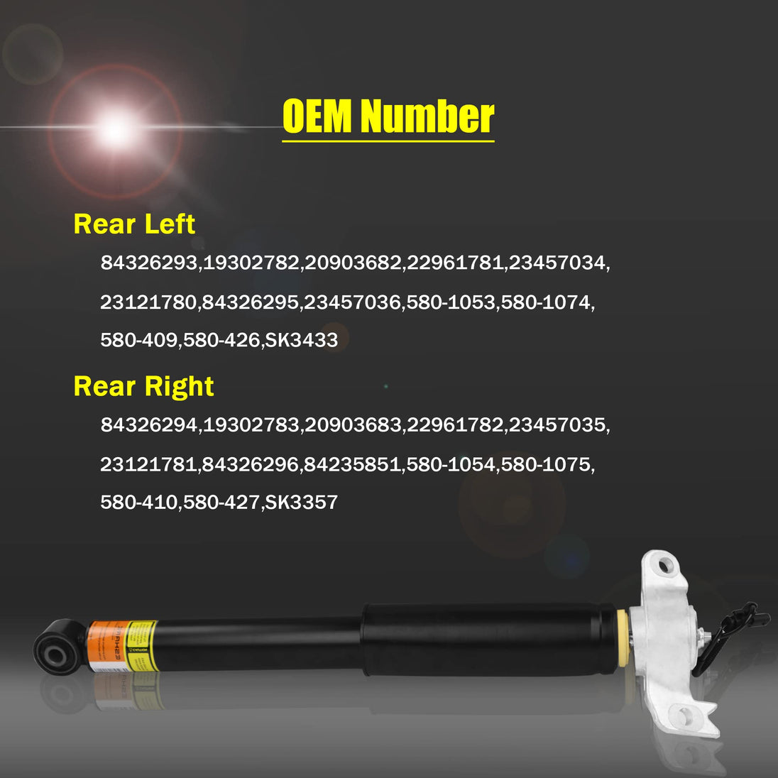 - Rear Left: 84326293, 84326295, 23457036, 5801053, 5801074, 580409, 580426, SK3433, 19302782, 20903682, 22961781, 23457034, 23121780