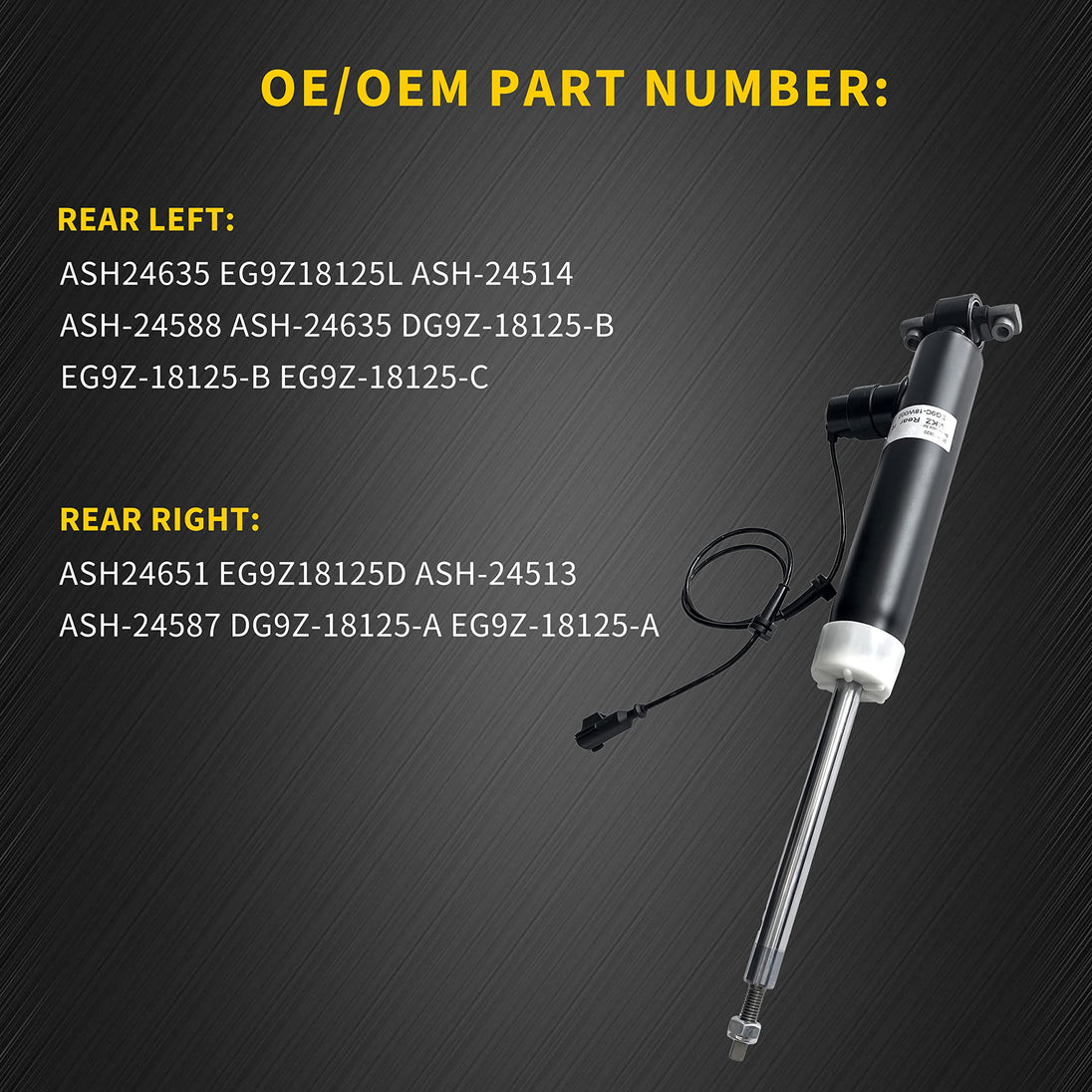 - Rear Right: ASH24651 EG9Z18125D ASH-24513 ASH-24587 DG9Z-18125-A EG9Z-18125-A